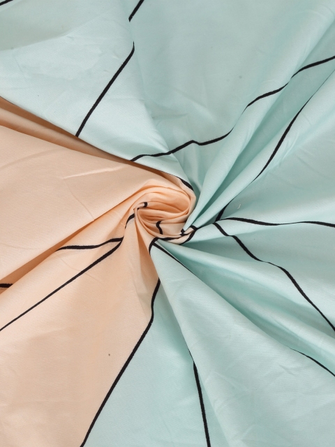 Blue & Pink Geometric 300 TC Cotton Blend Fitted Double Bedsheet with 2 Pillow Covers, Product Details: Thread count: 300, Material & Care: Cotton Blend, Specifications: Fabric: Cotton Blend, Thread Count: 300