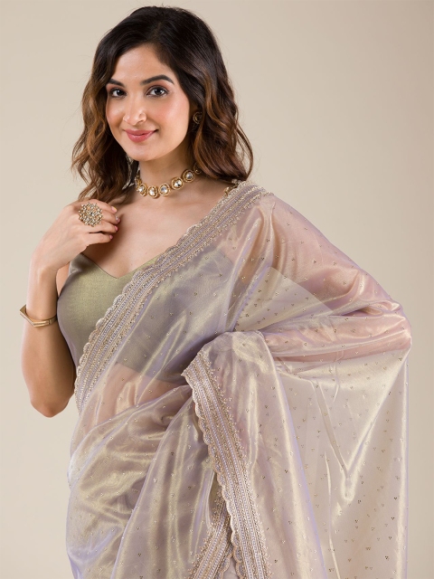 3 reviews for MANDARA Embellished Beads and Stones Tissue Saree