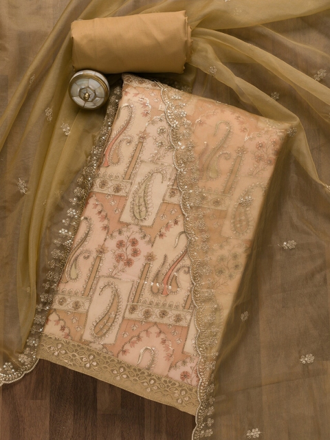 Brown embroidered unstitched dress material