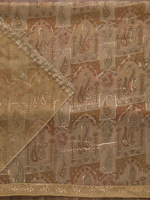 Brown embroidered dupatta, has Disclaimer: Images are for referral purposes only. The actual product is unstitched