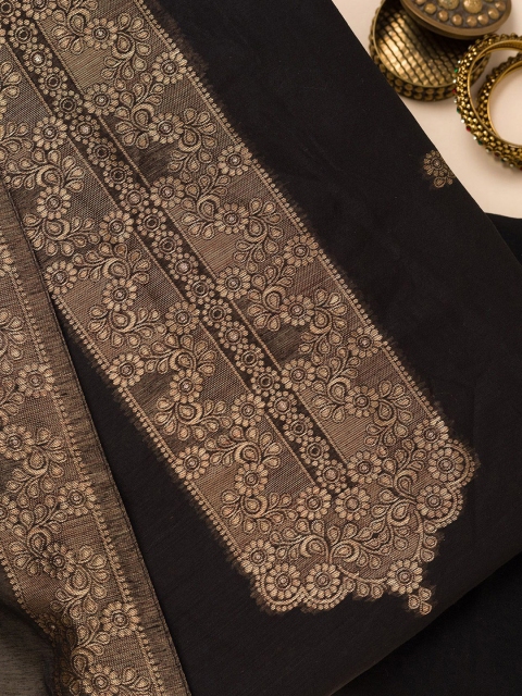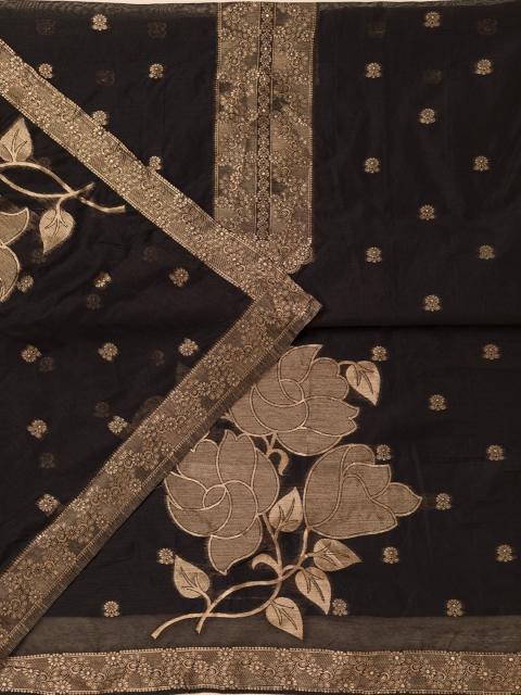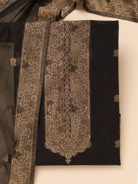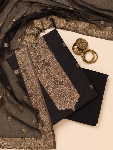 Black and gold-toned woven design unstitched dress material