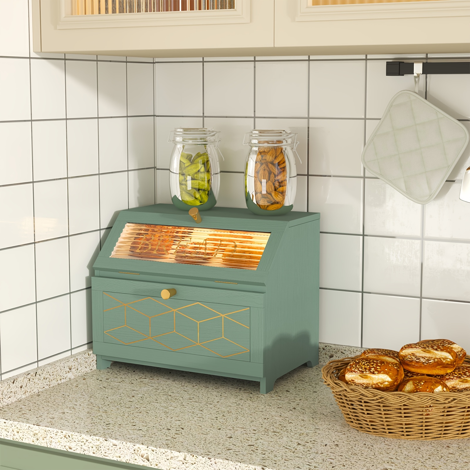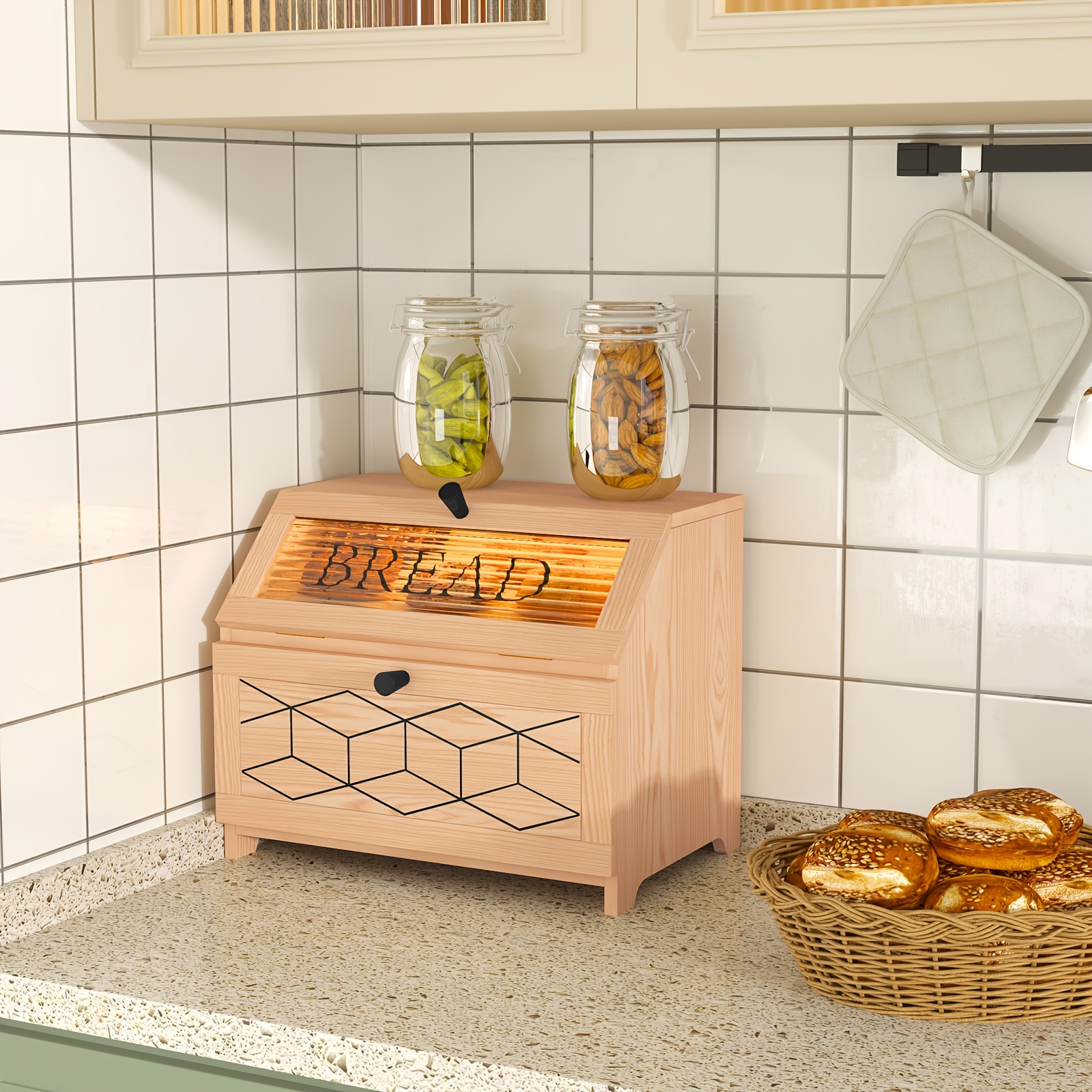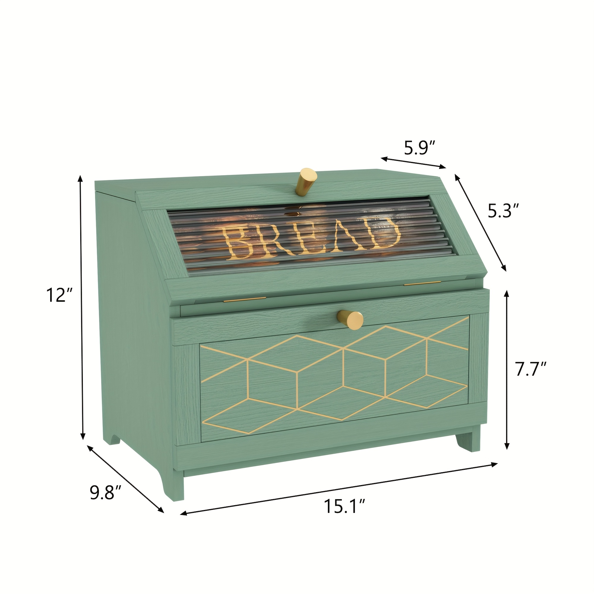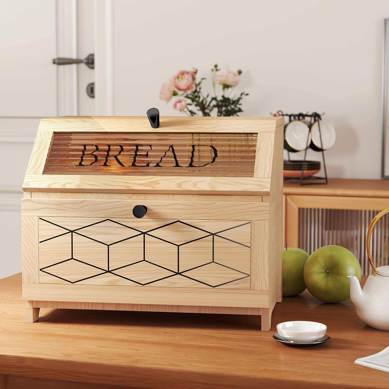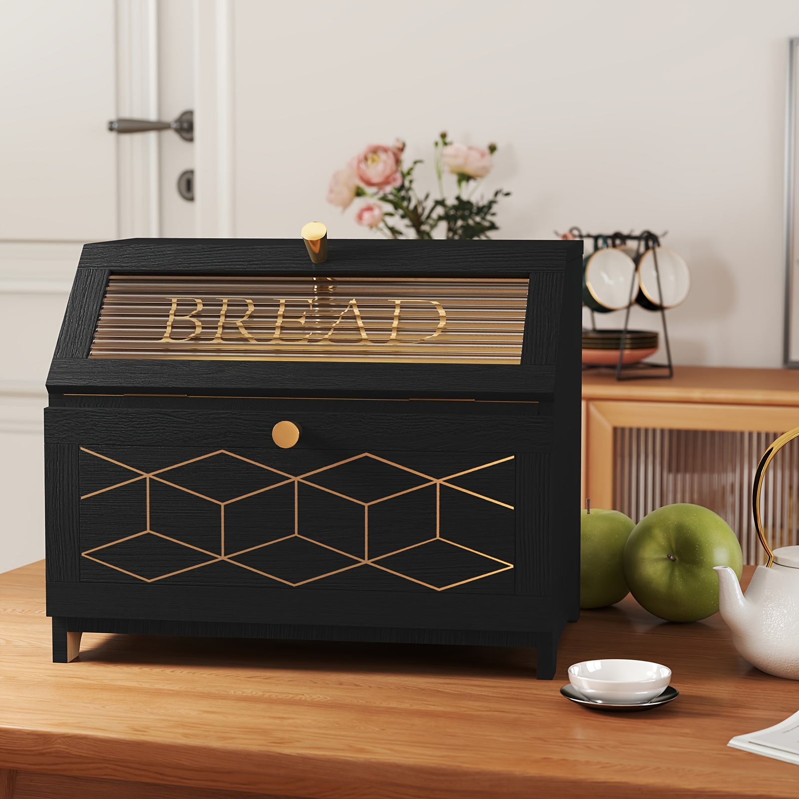 Large Double-Layer Square Wood Bread Box With Golden Trim – Reusable, Flip Top, Wooden Bread Container For Kitchen Countertop, Corner Bread Storage For Homemade Bread – For Kitchen Organization – Perfect For Keeping Bread Fresh & Organized