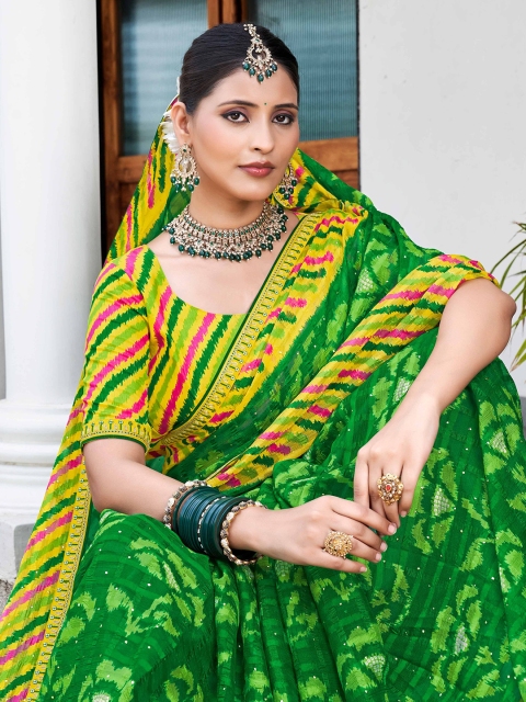 - Green and yellow saree