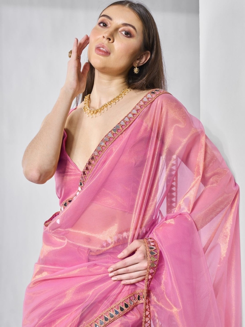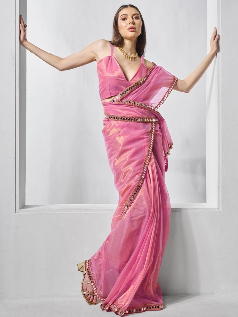 The blouse worn by the model might be for modelling purpose only. Check the image of the blouse piece to understand how the actual blouse piece looks like.