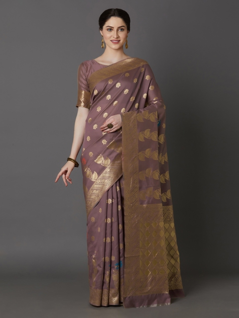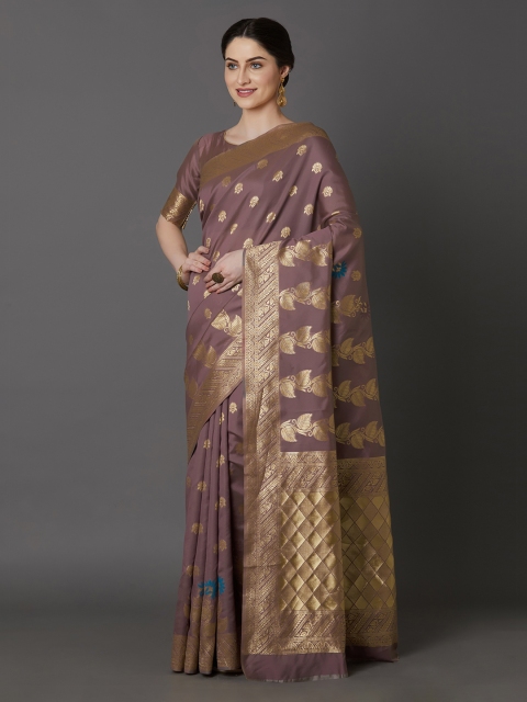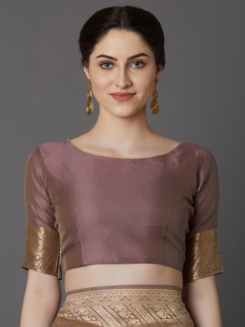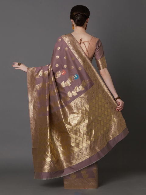 Brown and Gold-toned kanjeevaram woven design saree and has a woven design border