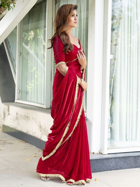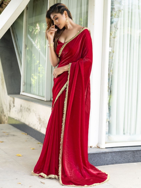Mandara Satin Embellished Detail Saree with Blouse Piece