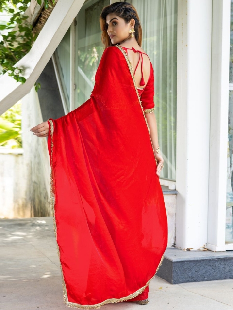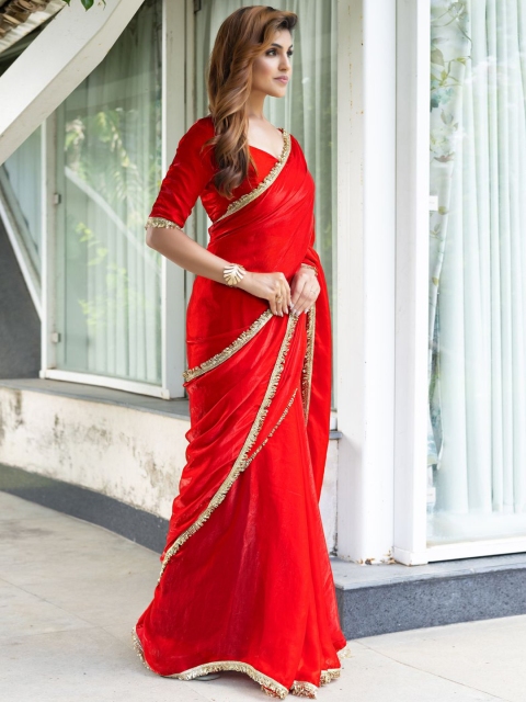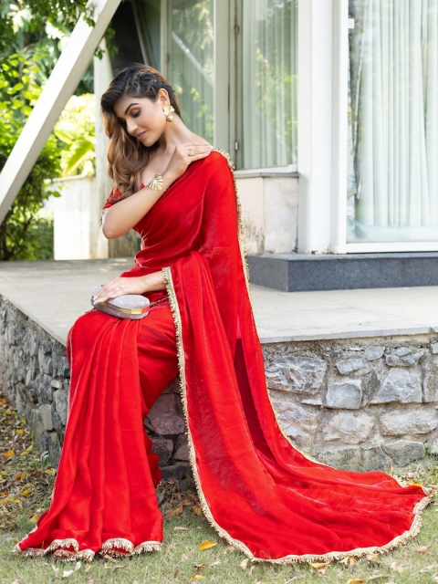 The blouse worn by the model might be for modelling purpose only. Check the image of the blouse piece to understand how the actual blouse piece looks like.