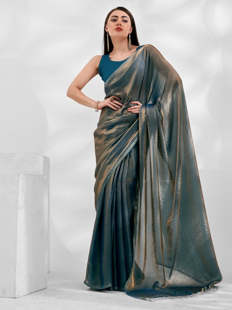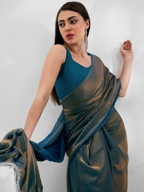 - Teal and gold-toned saree