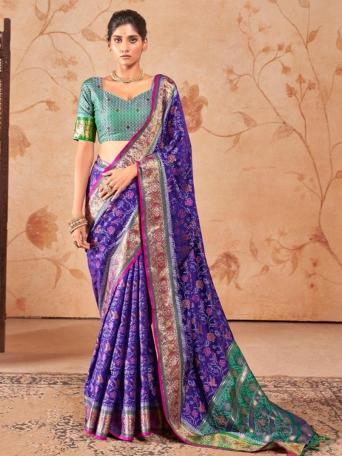 - Purple and green patola saree