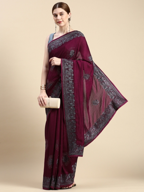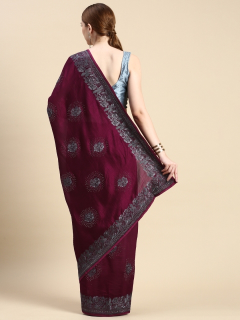 MOHEY Woven Design Ethnic Motifs Stones-Studded Art Silk Saree