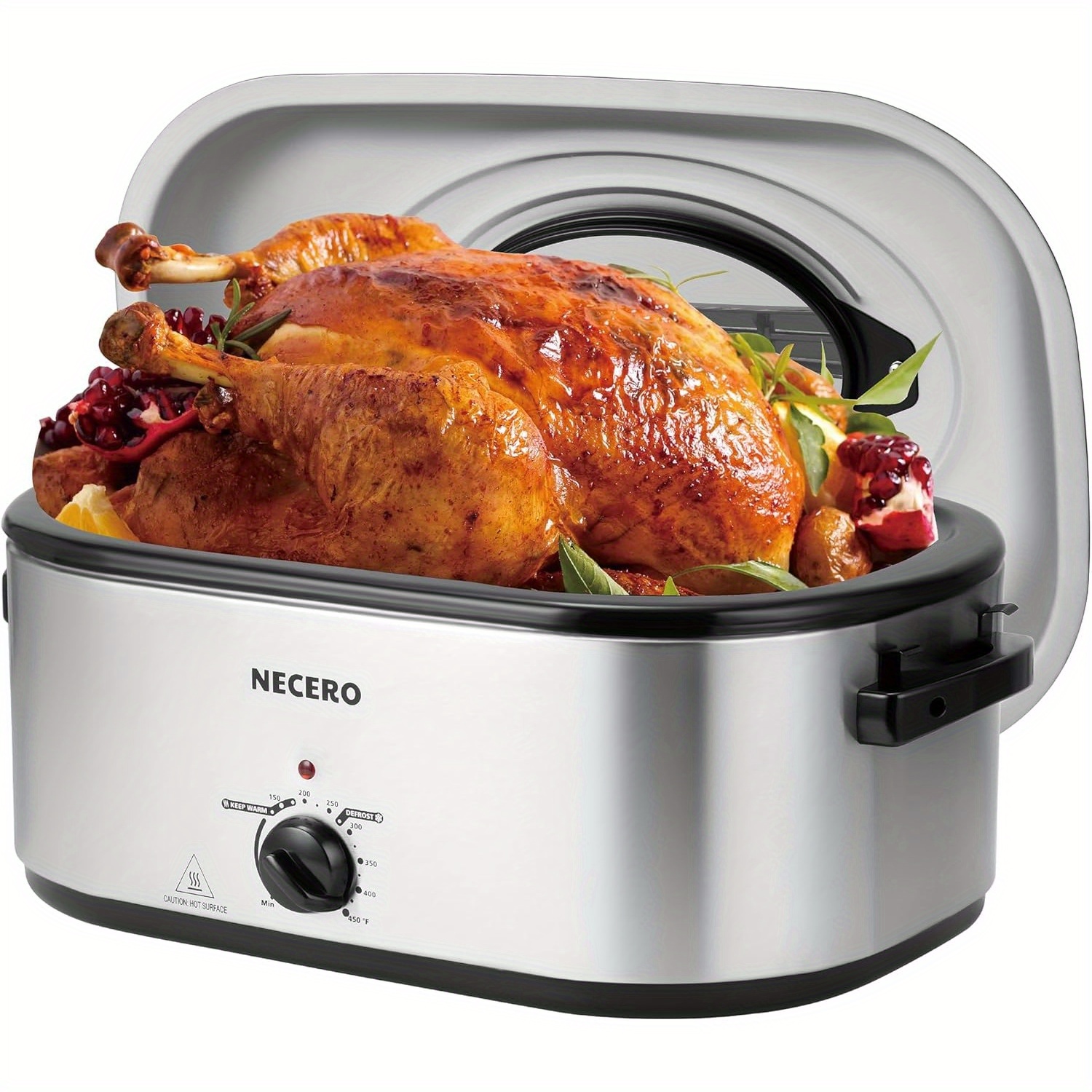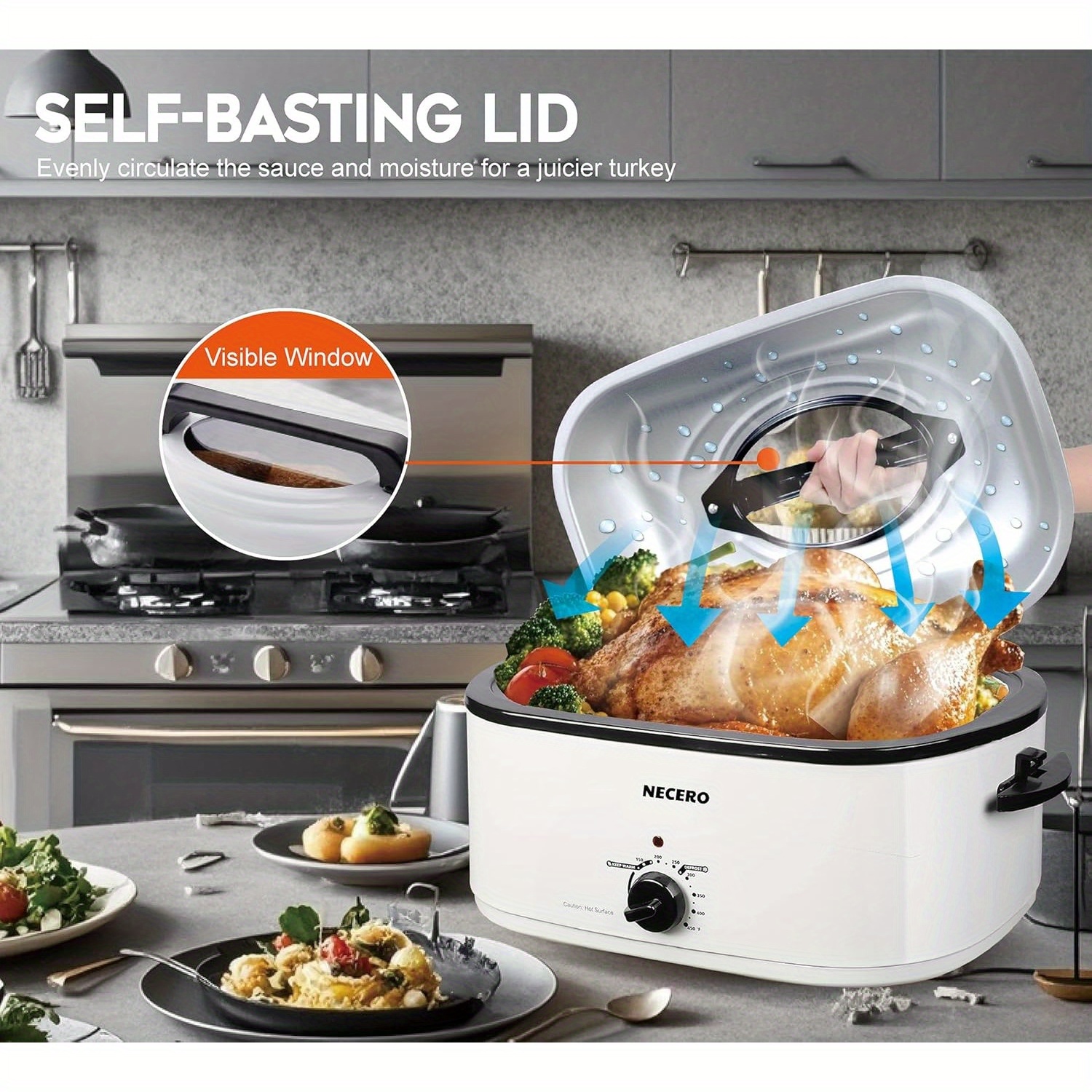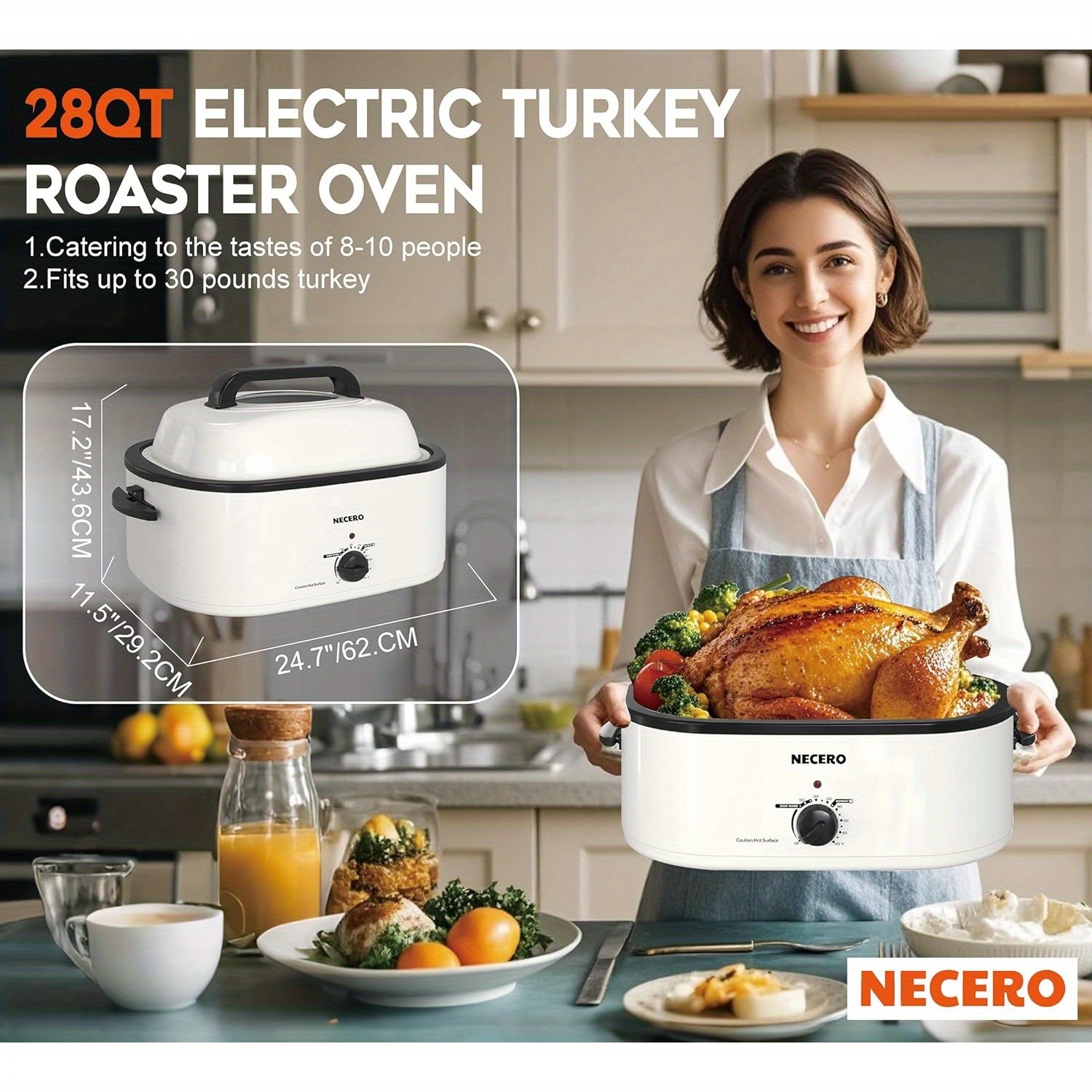 NECERO 28 Quart Electric Roaster Oven with Self-Basting Lid & Removable Rack – Stainless Steel Turkey Roaster for Up to 28LB Birds, Visible Glass Lid, Oval Design for Even Heating, Easy-Clean Kitchen Appliance, Healthy Cooking | Easygrip Handles | Stainle
