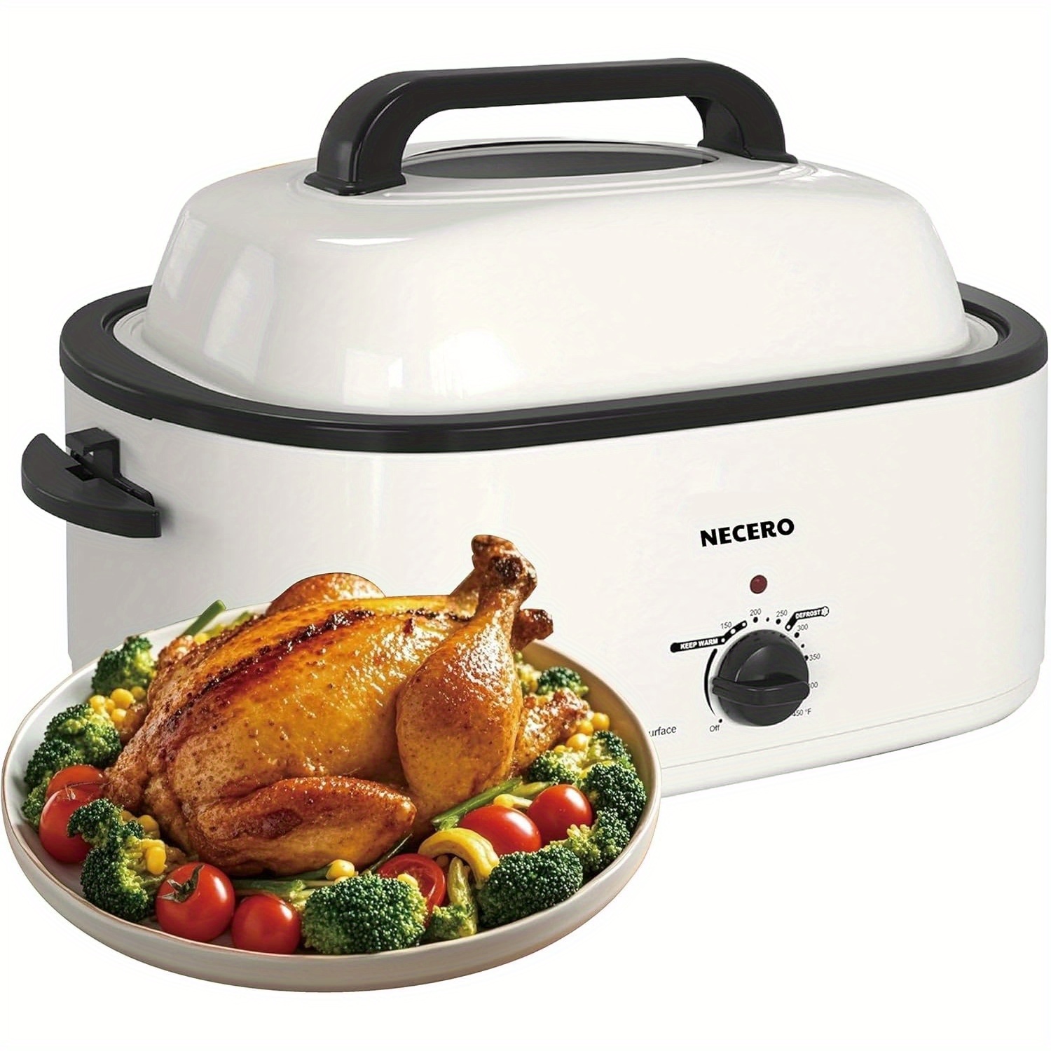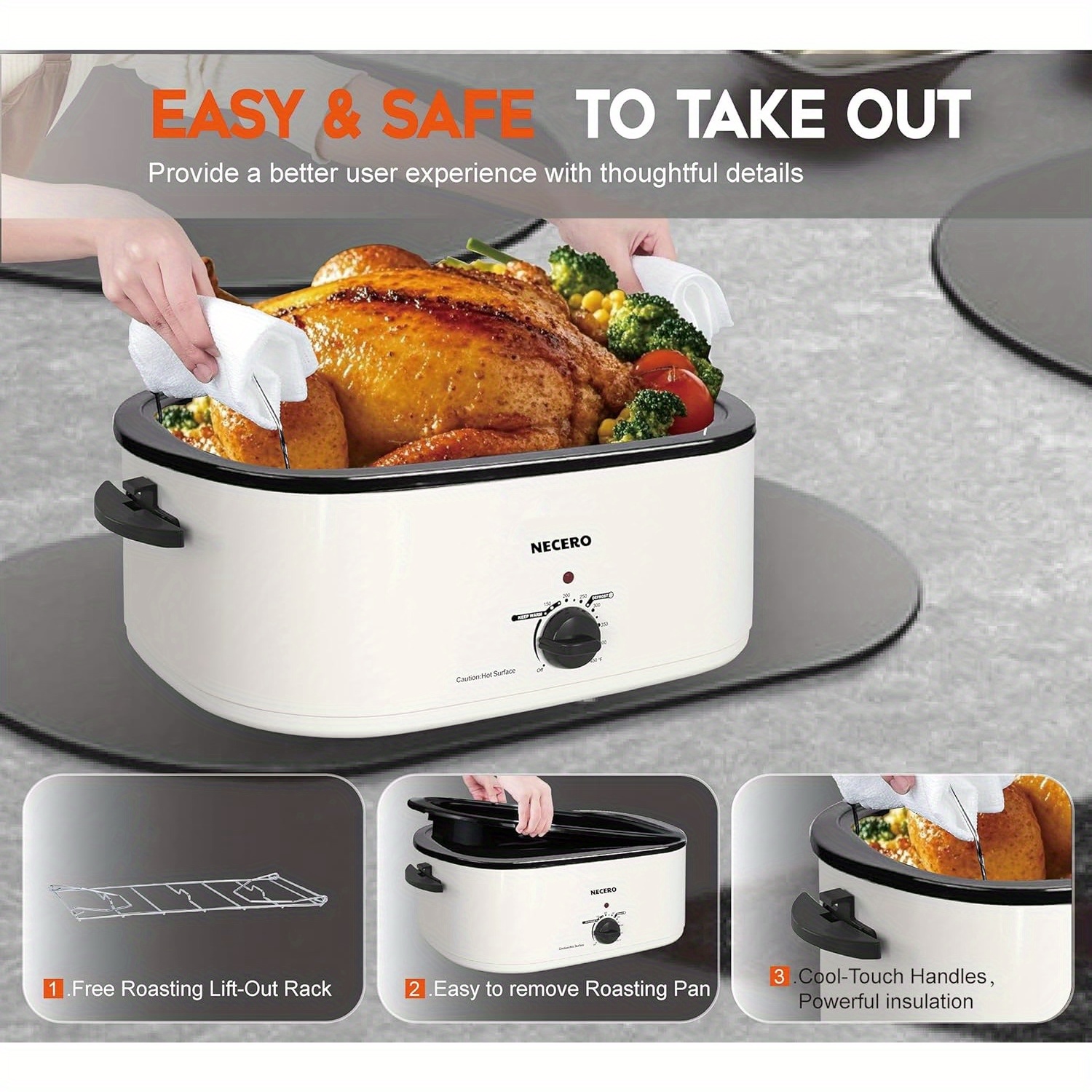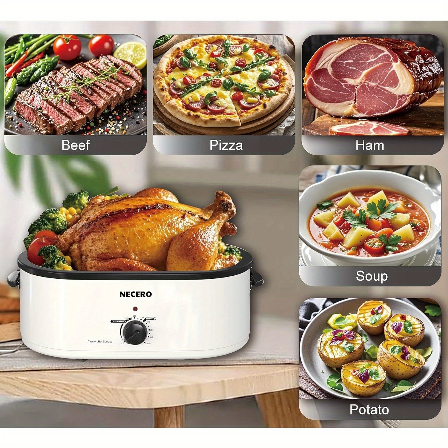 NECERO 28 Quart Electric Roaster Oven with Self-Basting Lid & Removable Rack – Stainless Steel Turkey Roaster for Up to 28LB Birds, Visible Glass Lid, Oval Design for Even Heating, Easy-Clean Kitchen Appliance, Healthy Cooking | Easygrip Handles | Stainle
