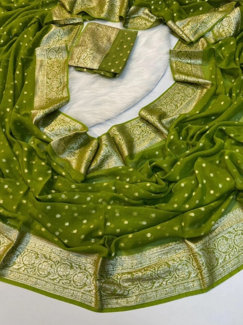 Pure Viscsose Georgette Dying Saree with WEAVING border with all over JARI work