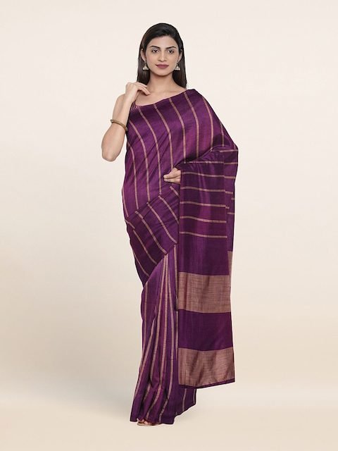 - Striped saree with no border