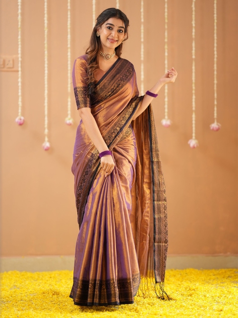• Copper-toned and black saree