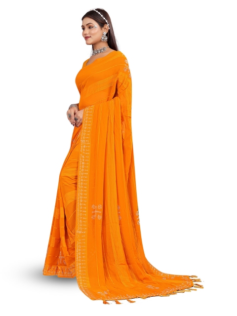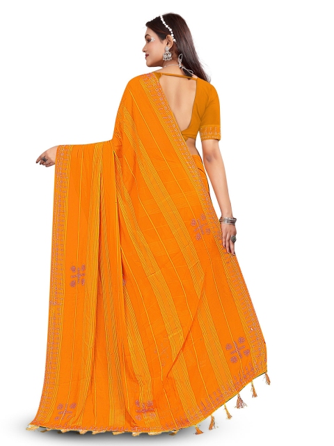 - Striped saree with embellished border