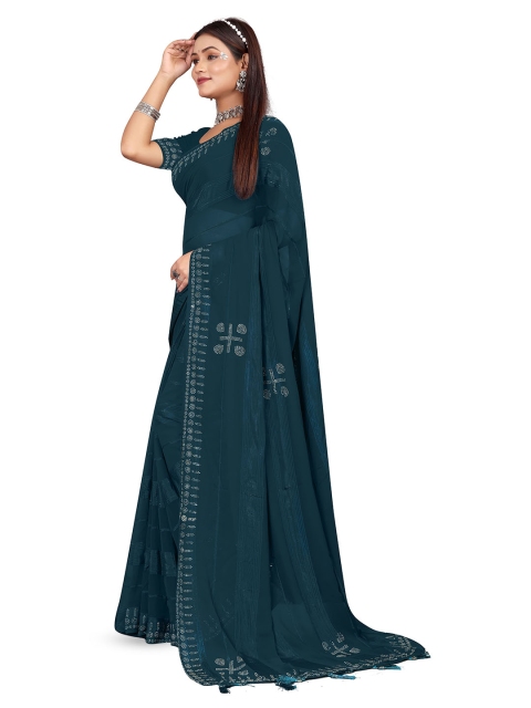 3 reviews for RANGRASIYA Striped Embellished Beads and Stones Saree