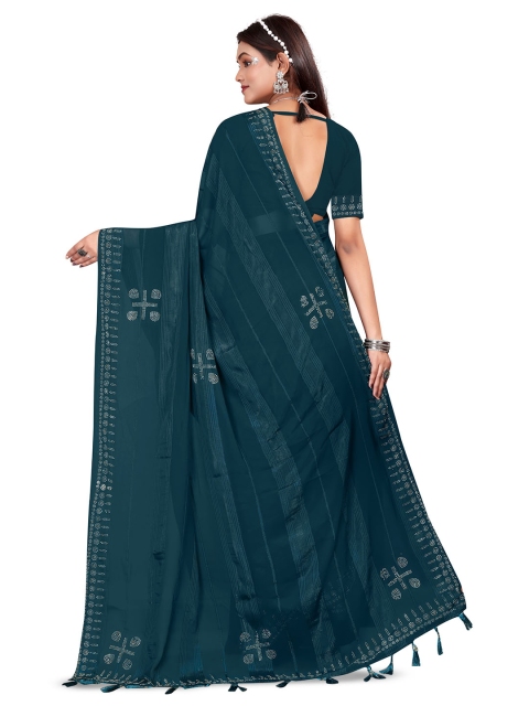 RANGRASIYA Striped Embellished Beads and Stones Saree