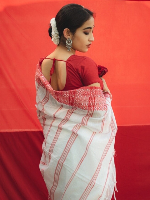 The blouse worn by the model might be for modelling purpose only. Check the image of the blouse piece to understand how the actual blouse piece looks like.