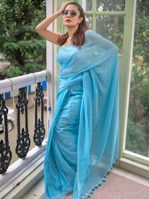 The material of the saree is so soft . Perfect for summer . But due its soft material, it’s kind of hard to arrange the saree pleats