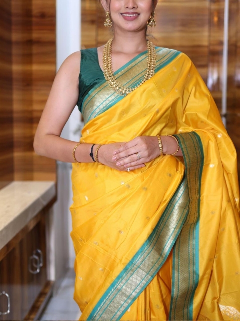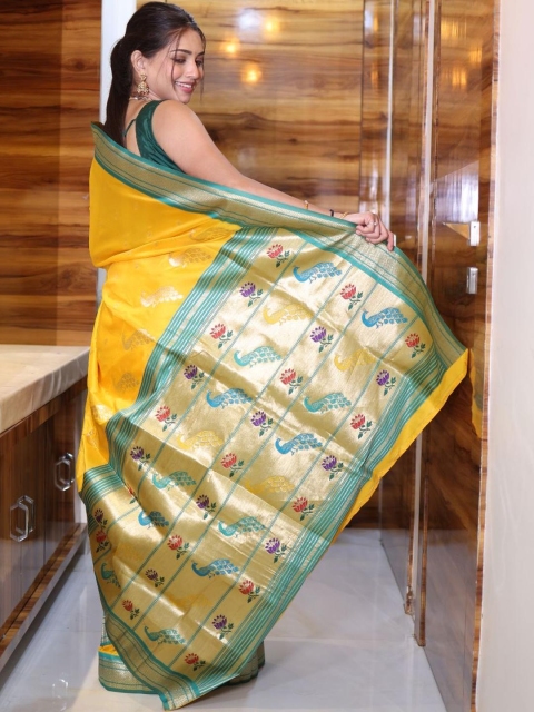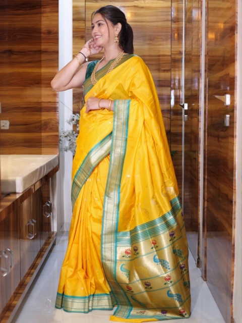 Paithani Silk Saree With Woven Zari Saree With Blouse Piece