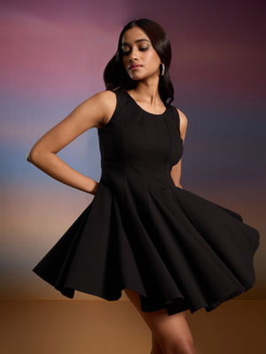 RSVP by Nykaa Fashion Black Solid Round Neck Sleeveless Fit and Flare Mini Dress
