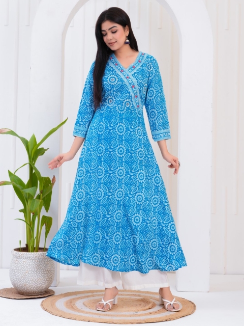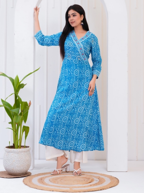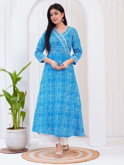 SAK JAIPUR Floral Printed Thread Work V-Neck Anarkali Kurta