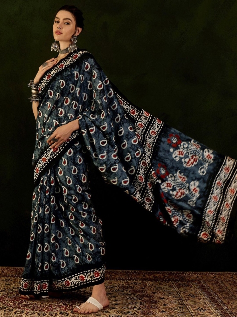 - Dabu print saree with printed borderĀ