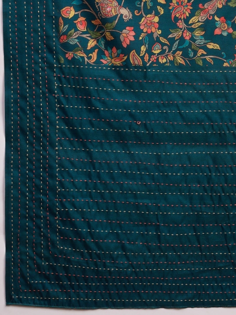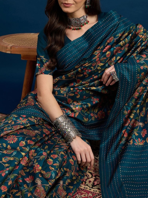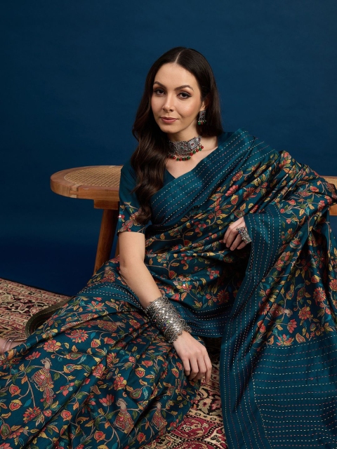 Teal blue & yellow saree