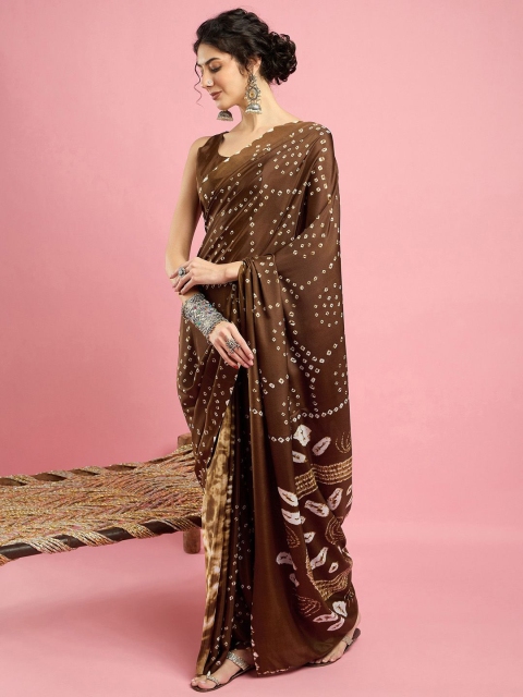 Sangria Ethnic Printed Bandhani Saree With Blouse Piece