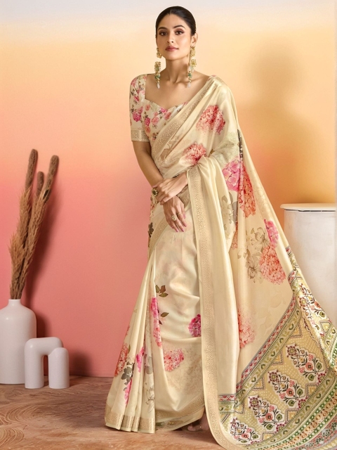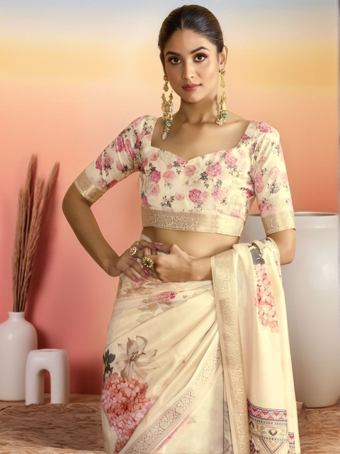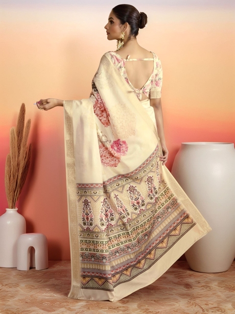 Cream-coloured-coloured saree
