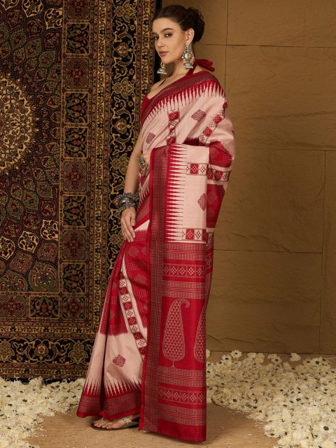- Beige and maroon ikat saree