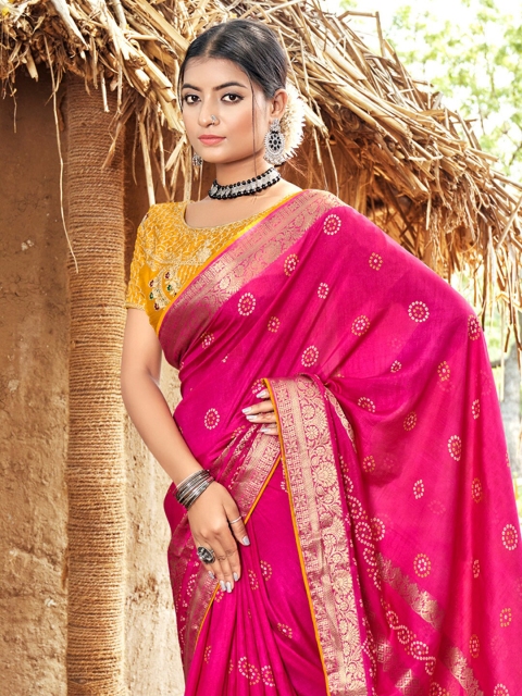 - Pink and gold-toned saree