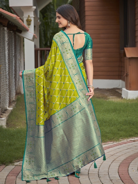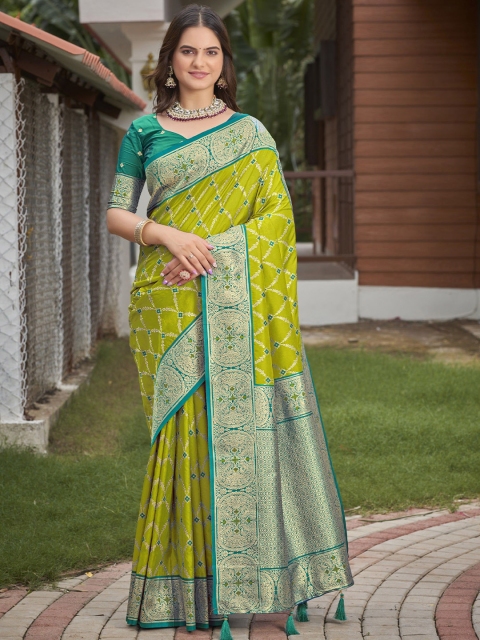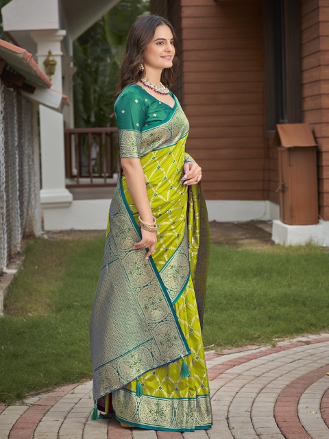 - Lime green and green banarasi saree