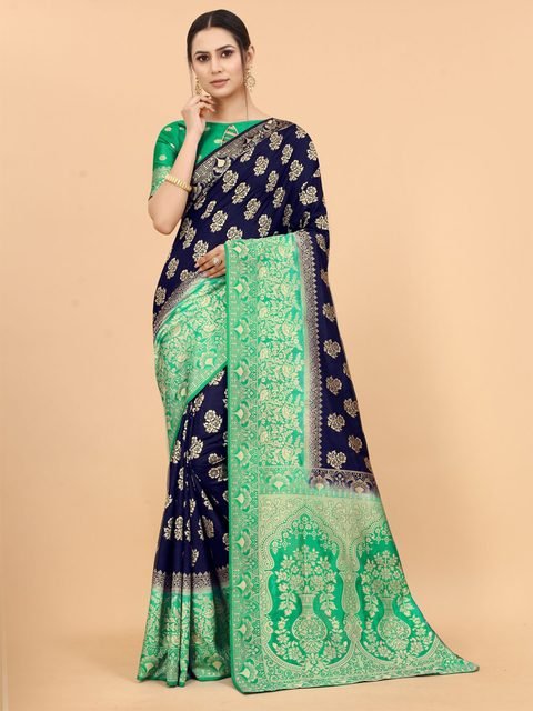 The blouse worn by the model might be for modelling purpose only. Check the image of the blouse piece to understand how the actual blouse piece looks like.