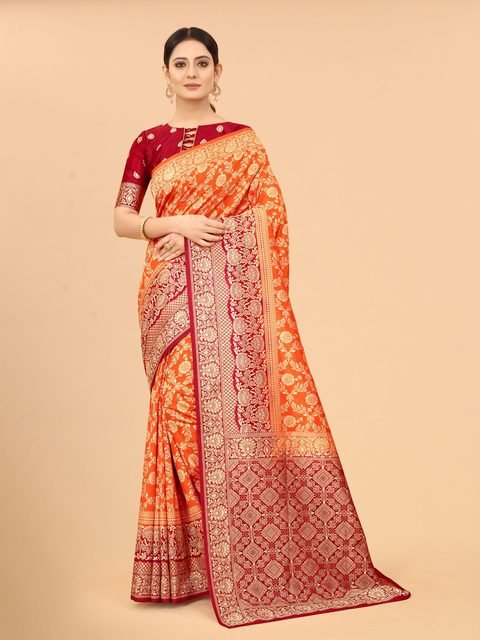 - Orange and maroon banarasi saree