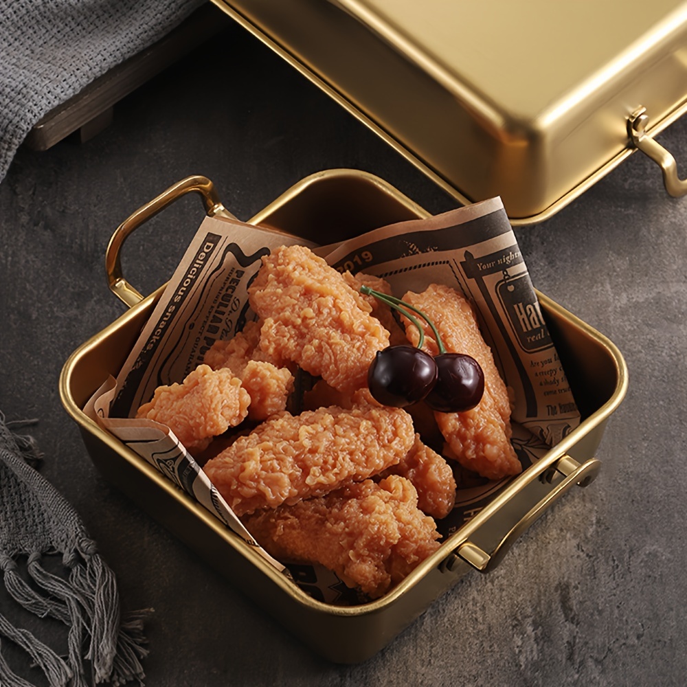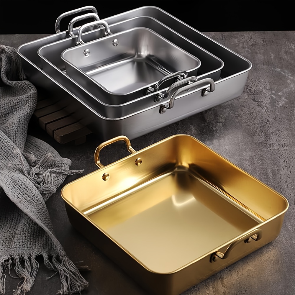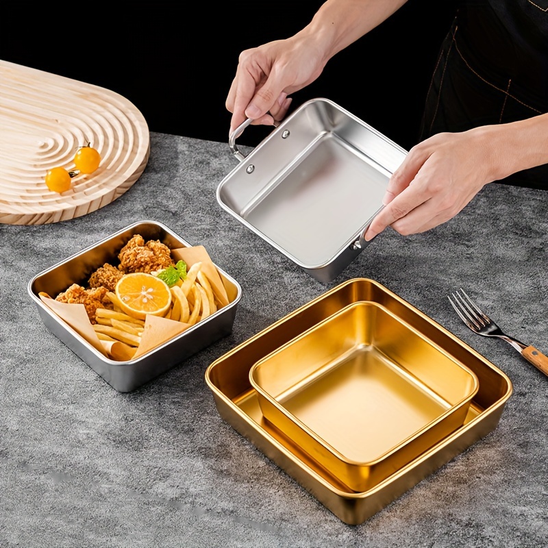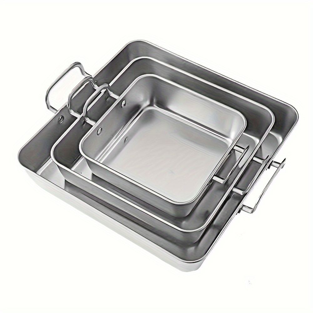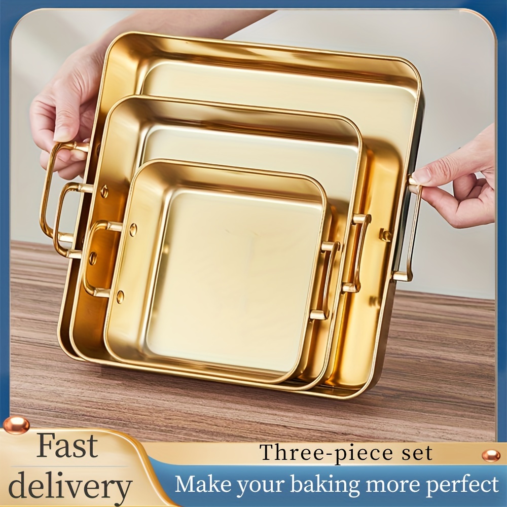 Set Of 3 Pieces, Double-eared French Fries Plate Cake Plate Square Baking Dish Casserole Non-stick Baking Dish Cookie Plate Baking Bread Plate Oven Stainless Steel Mousse