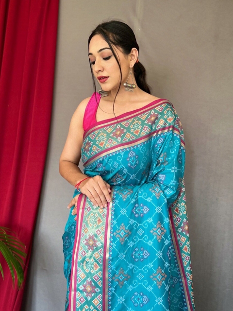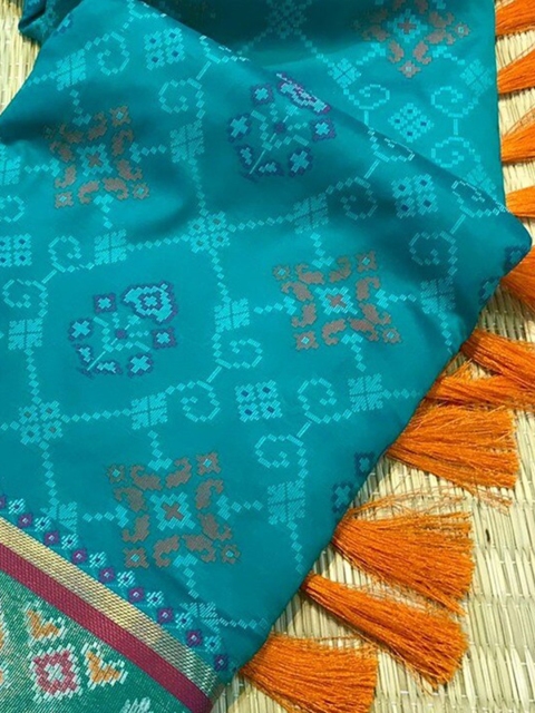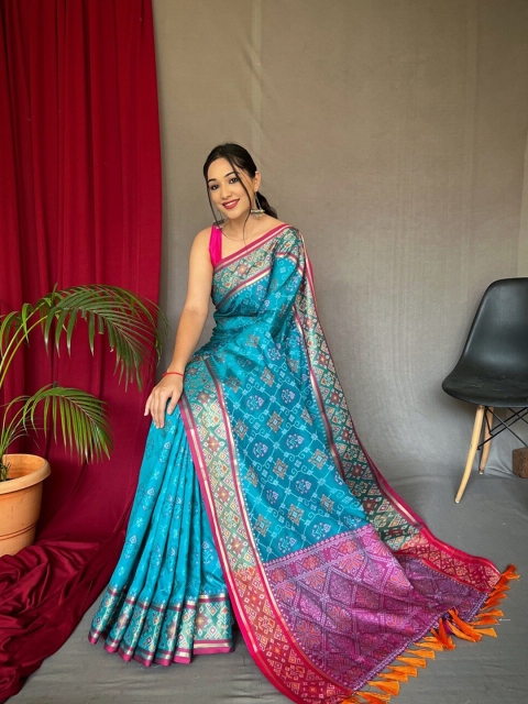 • Blue and gold-toned patola saree