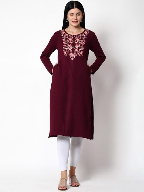 SHEREEN Women Purple Floral Embroidered Wool Kurta