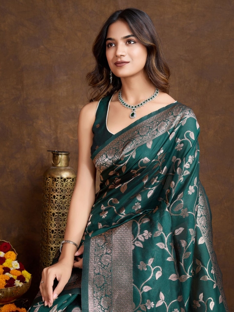 The blouse worn by the model might be for modelling purpose only. Check the image of the blouse piece to understand how the actual blouse piece looks like.
