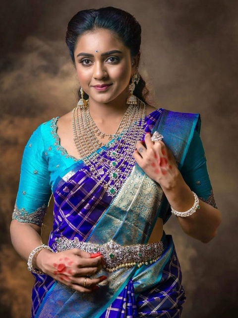 The blouse worn by the model might be for modelling purpose only. Check the image of the blouse piece to understand how the actual blouse piece looks like.