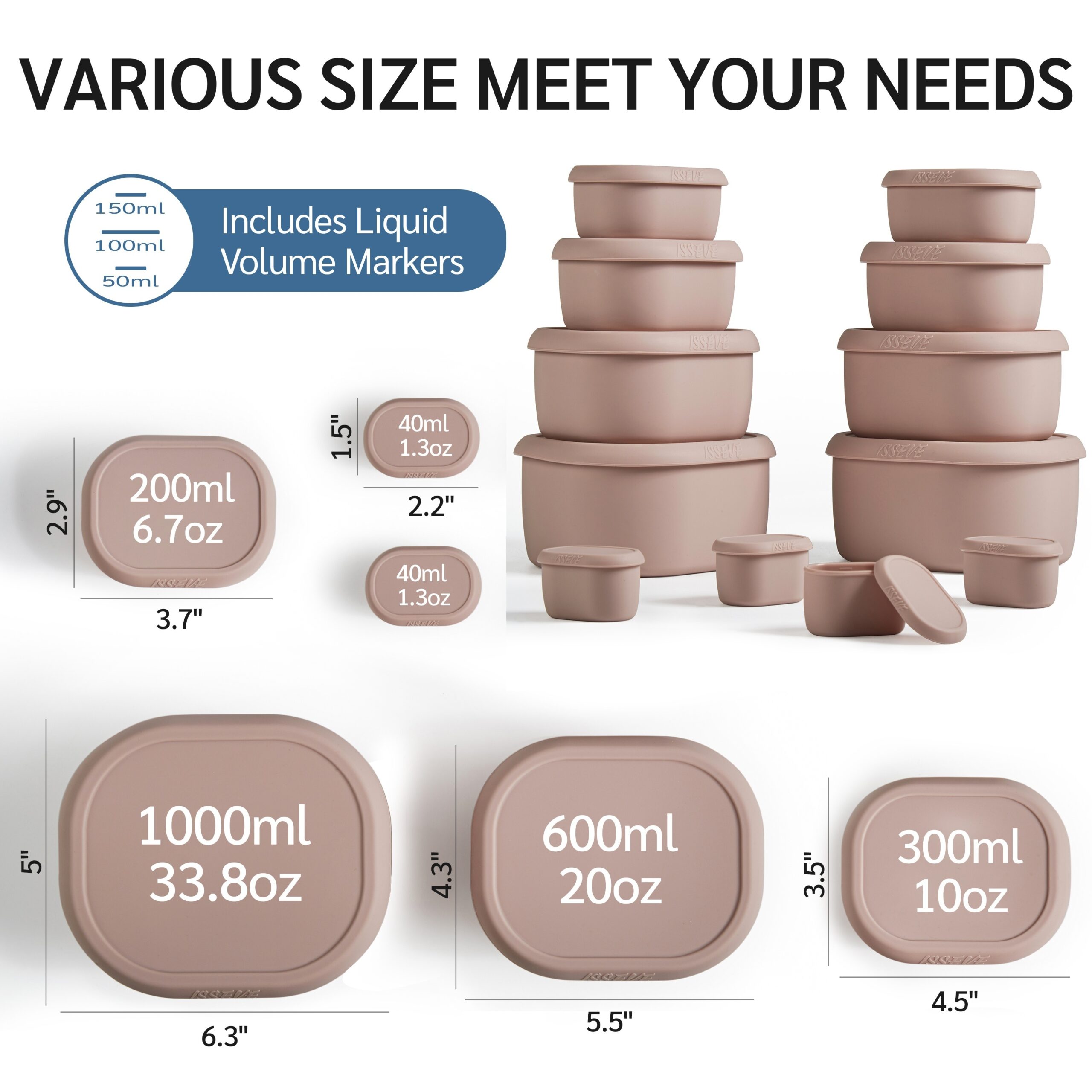 [Silicone Meal Prep Containers] 12Pcs/Set Nesting Silicone Food Storage Containers – BPA Free, Airtight, Reusable Meal Prep – Freezer Dishwasher Safe 33.8oz, 20oz, 10oz, 6.7oz, 1.3oz