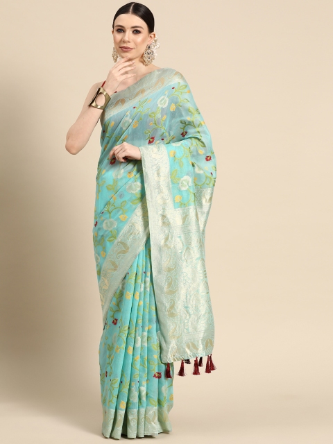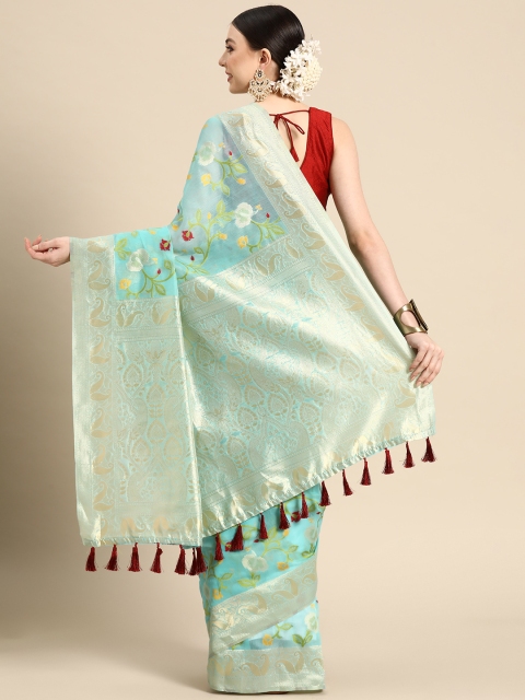 - Turquoise blue and green jamdani saree