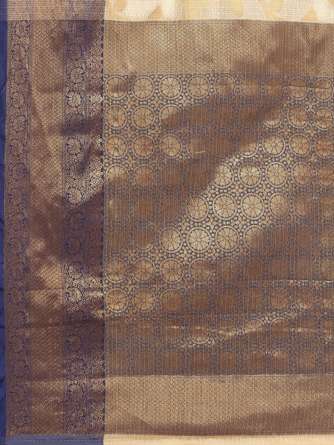 • Navy blue and off white mysore silk saree