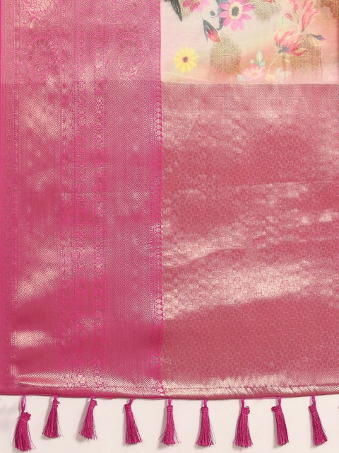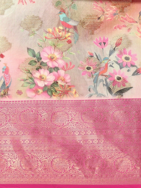 - Floral printed saree with zari borderĀ