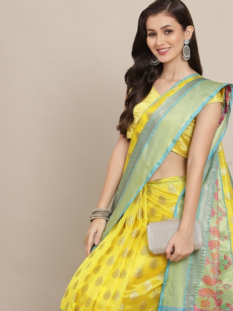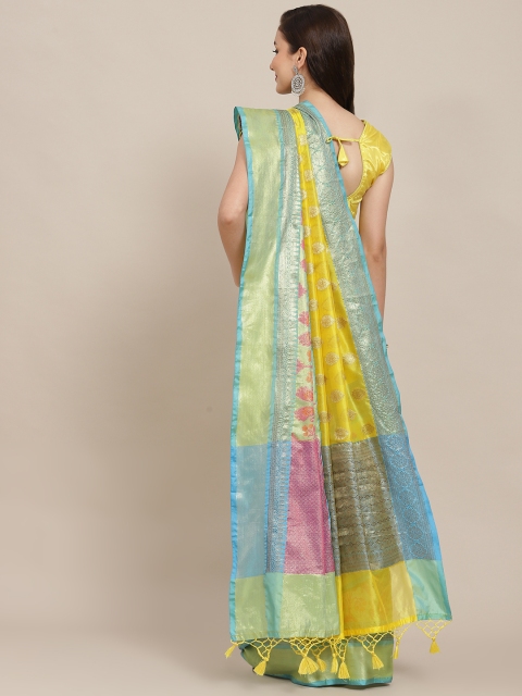 - Yellow and turquoise blue banarasi saree