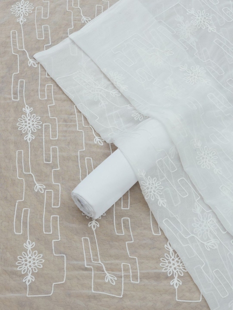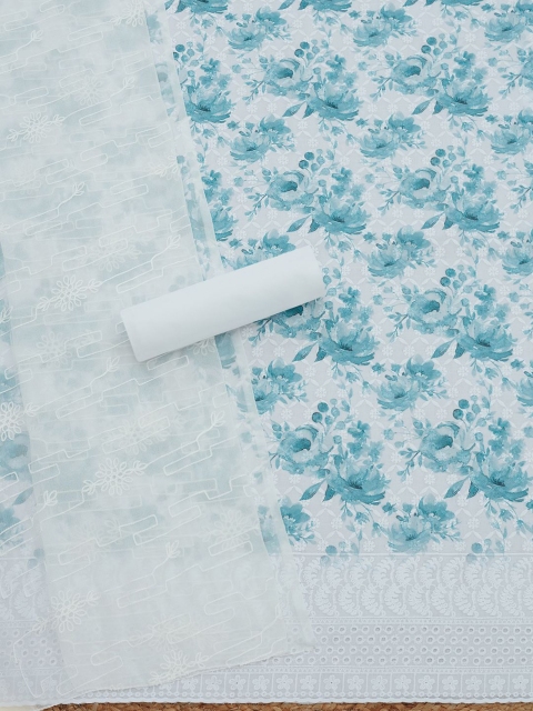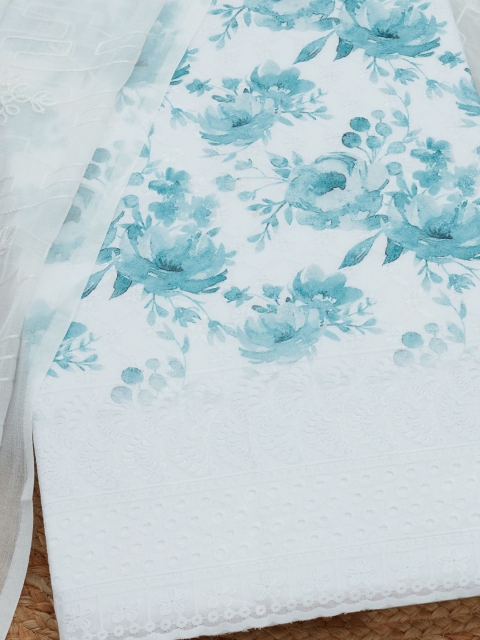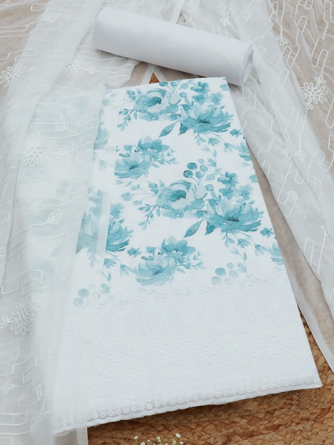 Blue and white printed unstitched dress material