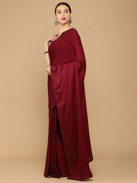 The blouse worn by the model might be for modelling purpose only. Check the image of the blouse piece to understand how the actual blouse piece looks like.