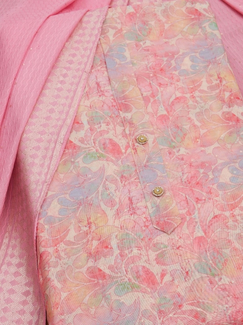 Peach-coloured and pink printed kurta fabric