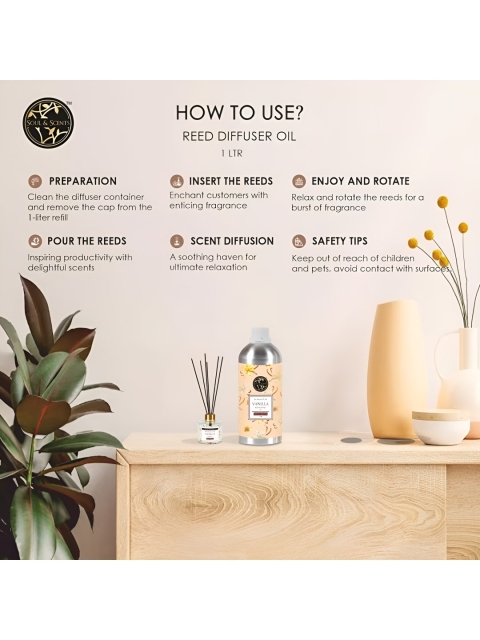 SOUL & SCENTS Vanilla Reed Diffuser Refill Fragrance 18 Reed Sticks 1Ltr
